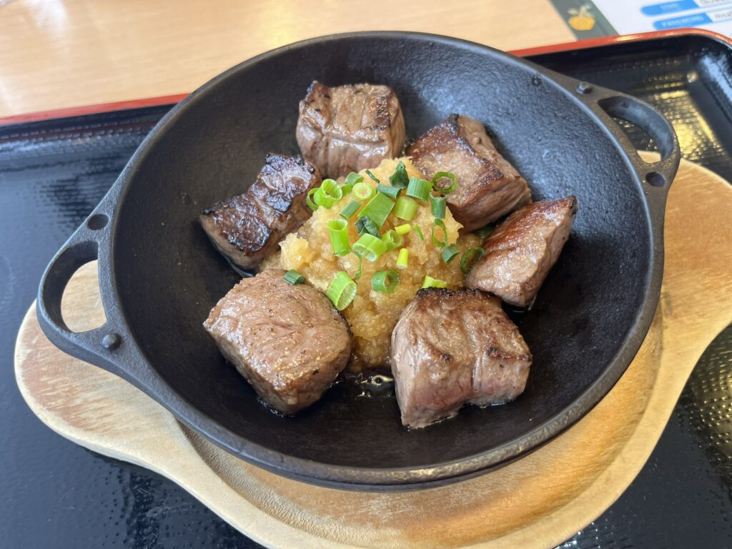 前沢牛を食す。「前沢牛」とは、岩手ふるさと農業協同組合によって商標登録された牛肉の銘柄。